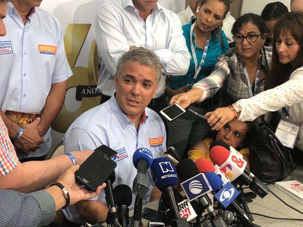 Iván Duque Márquez, candidato presidencial por el Centro Democrático, se mostró dispuesto a asistir a un debate con su rival Gustavo Petro que sea televisado, en respuesta a algunos sectores de la opinión pública y del mismo candidato de la Colombia Humana que lo señalan de haber cancelado su asistencia a eventos de este tipo.